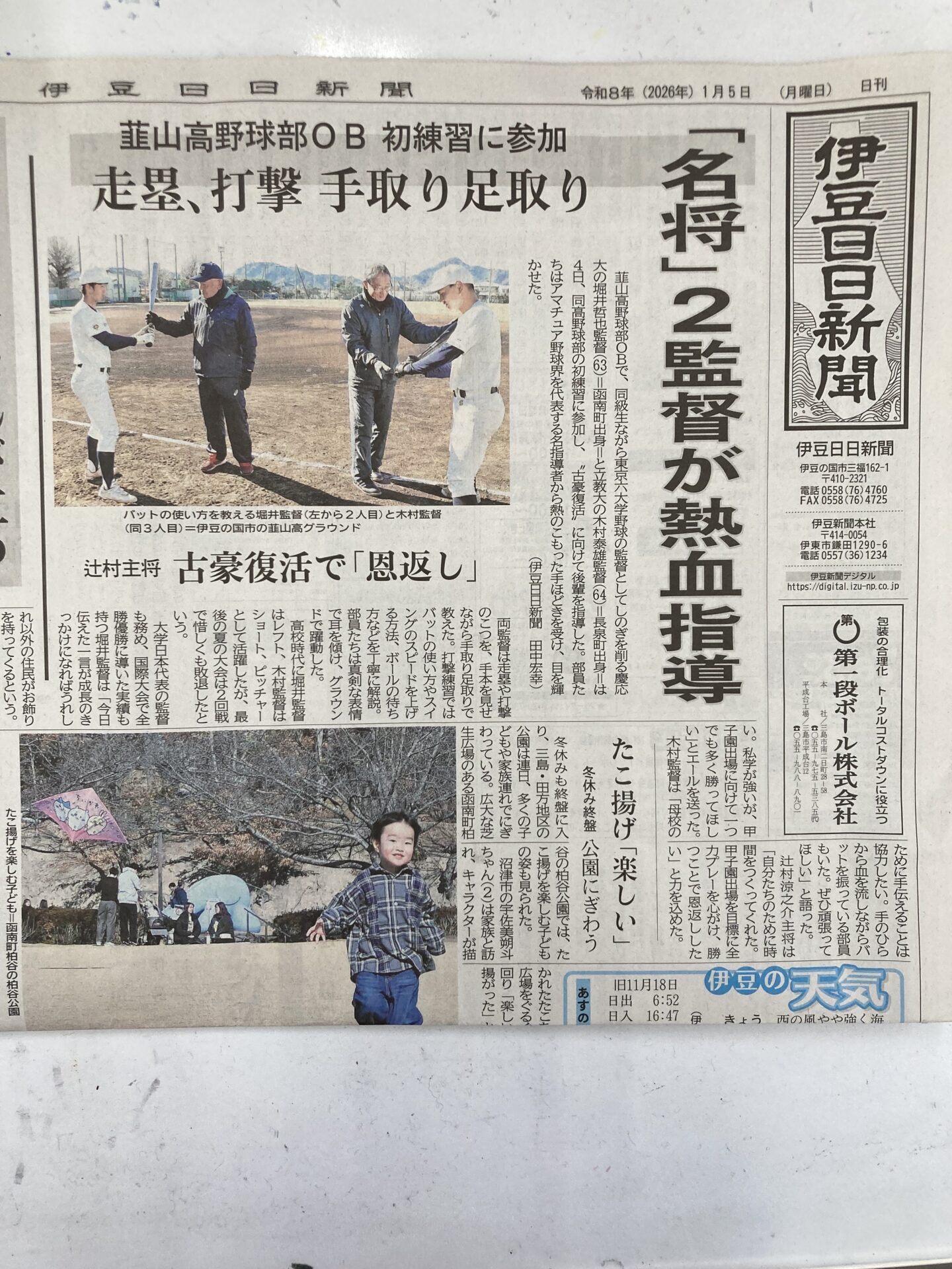 「名将」2監督が熱血指導!!!!韮山高校野球部OBの皆様の貴重なご指導に感謝の2026スタート!!!!
